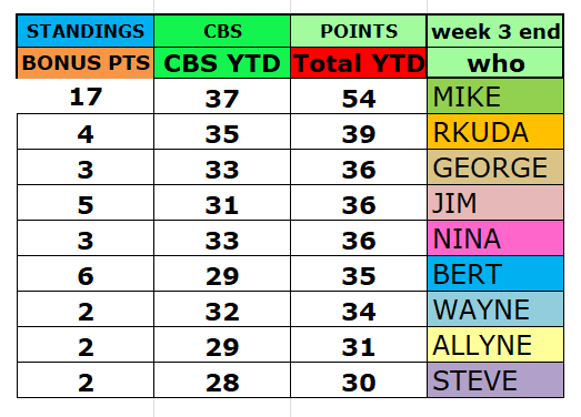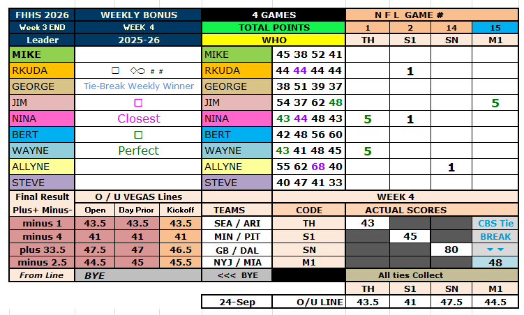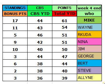 CBS Sports App Week 4 & Totals