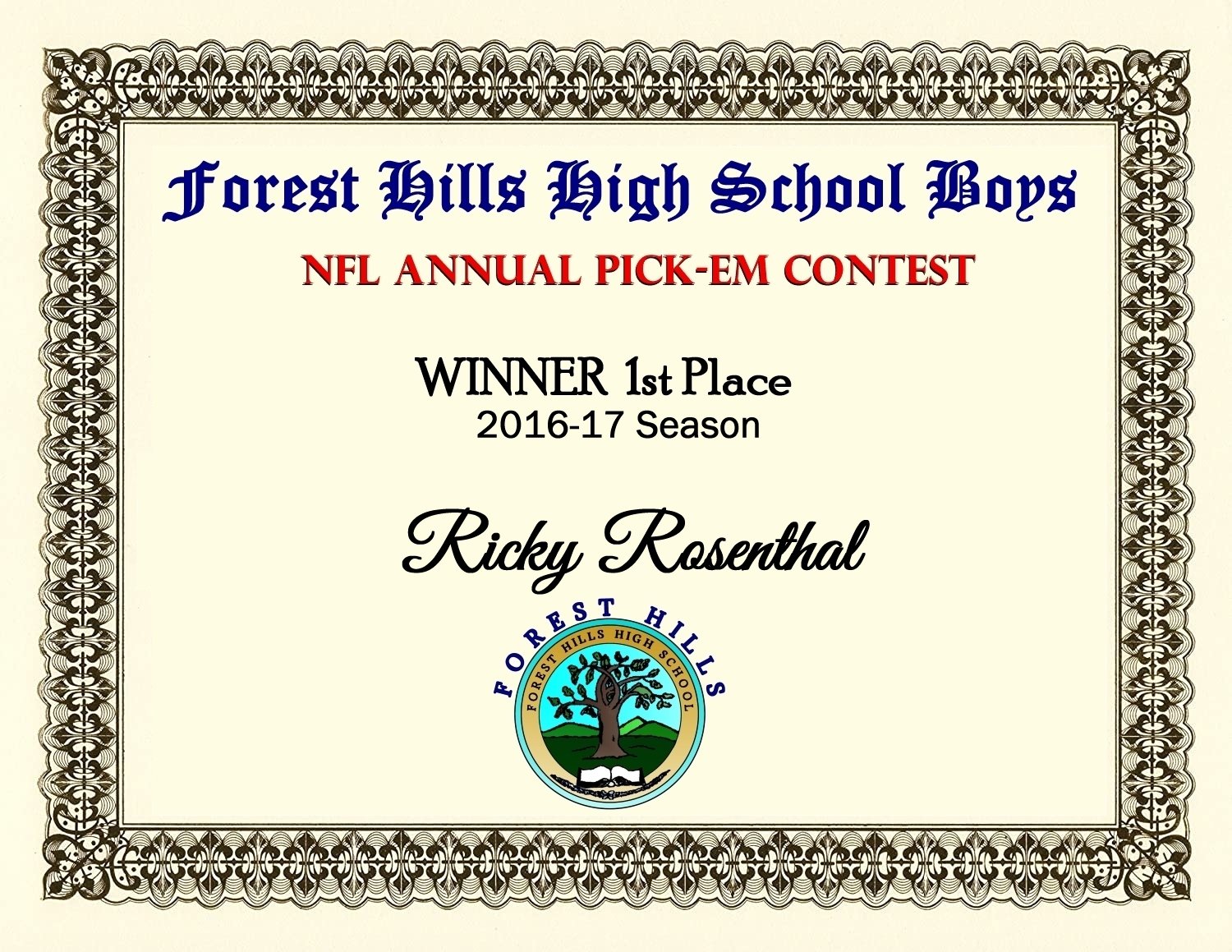 Ricky Rosenthal was the 16-17 Season Champ