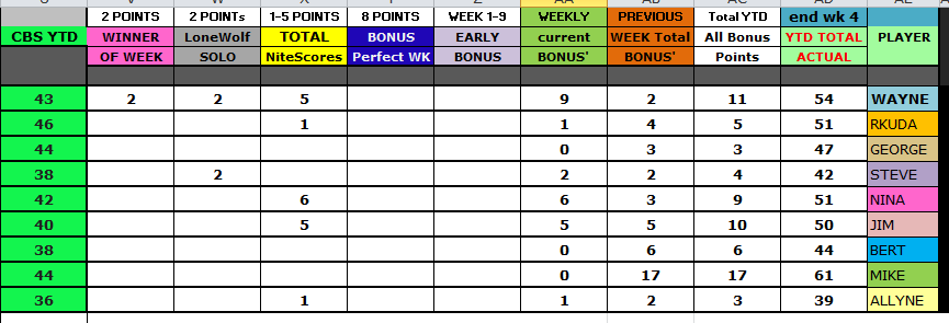 Bonus Week 4 & Totals