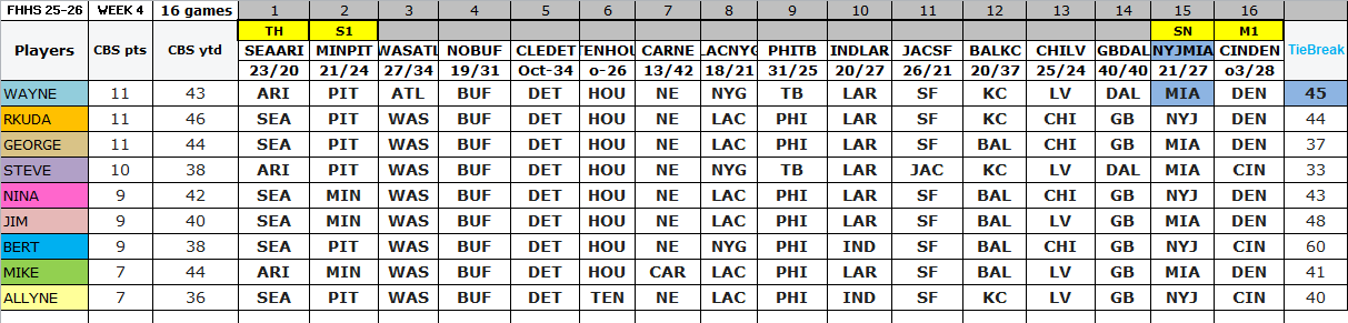 CBS Sports App Week 4 & Totals